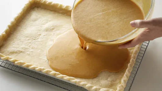 var configuration = {"title":"Pumpkin Slab Pie","introduction":"We took our \u003ca href=\u0022https://www.pillsbury.com/recipes/perfect-pumpkin-pie/0abd84dd-0bce-44ae-b02d-963442eb02d5\u0022 target=\u0022_blank\u0022\u003ePerfect Pumpkin Pie\u003c/a\u003e and transformed it into a slab pie for a crowd! Every bite is just like the traditional creamy, smooth, pumpkin-flavored pie you\u0027re used to, but with a greater crust-to-filling ratio (Added bonus: There\u0027s no need for a pie pan!). Bake this classic dessert for everyone in your family and then some this holiday season.","servingSize":"1 Serving","image":{"small":{"media":"(min-width: 0px)","src":"https://mojo.generalmills.com/api/public/content/8iuOARMm7EugK7HlRgcrWQ_webp_base.webp?v=9bfcc0eb\u0026t=e724eca7b3c24a8aaa6e089ed9e611fd"},"medium":{"media":"(min-width: 500px)","src":"https://mojo.generalmills.com/api/public/content/8iuOARMm7EugK7HlRgcrWQ_webp_base.webp?v=9bfcc0eb\u0026t=191ddcab8d1c415fa10fa00a14351227"},"large":{"media":"(min-width: 767px)","src":"https://mojo.generalmills.com/api/public/content/8iuOARMm7EugK7HlRgcrWQ_webp_base.webp?v=9bfcc0eb\u0026t=191ddcab8d1c415fa10fa00a14351227"},"alt":"Pumpkin Slab Pie"},"contributor":{"label":"By","name":"Pillsbury Kitchens","profileUrl":"/about-us","displayDate":{"label":"Updated","date":"Oct 10, 2019"}},"ingredientGroups":[{"ingredients":[{"quantity":"1","description":"box (14.1 oz) refrigerated Pillsbury™ Pie Crusts (2 Count), softened as directed on box","productLink":"/products/pie-crust/refrigerated-pie-crust"},{"quantity":"3","description":"eggs"},{"quantity":"1 1/4","description":"cups sugar"},{"quantity":"2 1/4","description":"teaspoons pumpkin pie spice"},{"quantity":"3/4","description":"teaspoon salt"},{"quantity":"2 1/4","description":"cups canned pumpkin (from two 15-oz cans)"},{"quantity":"2","description":"cups evaporated milk (from two 12-oz cans)"}]}],"steps":[{"description":"Heat oven to 425°F. Remove crusts from pouches. On lightly floured surface, unroll and stack crusts one on top of the other. Roll to 18x12-inch rectangle. Fit crust into 15x10x1-inch pan, pressing firmly into corners and sides, stretching dough slightly, if necessary. Fold extra crust underneath and slightly on top edges of pan. Flute or crimp edges. Bake 6 minutes. Reduce oven temperature to 350°F.","stepShotImageUrl":"//mojo.generalmills.com/api/public/content/QB6zEv0PEUisFUC22w2ysA_webp_base.webp?v=d9d44b6c\u0026t=51a43a57af4046789e5a7f20567b1195"},{"description":"Meanwhile, in large bowl, beat eggs with whisk. Beat in remaining ingredients until well blended. Pour into prebaked crust.","stepShotImageUrl":"//mojo.generalmills.com/api/public/content/RHyg81dZ10KJeO2qYfB-0w_webp_base.webp?v=7fc25d75\u0026t=51a43a57af4046789e5a7f20567b1195"},{"description":"Bake 33 to 36 minutes or until knife inserted in center comes out clean. Cool completely, about 2 hours. Cut into 4 rows by 4 rows. Store in refrigerator."}],"tips":[{"title":"","description":"We use a 15x10x1-inch pan—also known as a \u0022jelly roll pan\u0022—for our slab pies. Be sure to use this size pan for best results.","category":"Recipe/Ingredient Facts","tipShots":[]},{"title":"","description":"Press crust firmly into bottom and sides of pan to avoid any bubbles in crust during prebake.","category":"Recipe/Ingredient Facts","tipShots":[]},{"title":"","description":"Prebaking the crust is essential to ensure bottom of crust bakes all the way through once filled.","category":"Recipe/Ingredient Facts","tipShots":[]},{"title":"","description":"Top servings of pie with whipped cream and a sprinkle of pumpkin pie spice or cinnamon, if desired.","category":"Serving Suggestions/Menu","tipShots":[]},{"title":"","description":"You can make this sheet-pan pie up to one day ahead; cover and refrigerate.","category":"Do-Ahead","tipShots":[]},{"title":"","description":"Kitchen Tested - 9/2019","category":"Kitchen Tested","tipShots":[]}],"kitchenTips":[{"title":"","description":"We use a 15x10x1-inch pan—also known as a \u0022jelly roll pan\u0022—for our slab pies. Be sure to use this size pan for best results.","category":"Recipe/Ingredient Facts","tipShots":[]},{"title":"","description":"Press crust firmly into bottom and sides of pan to avoid any bubbles in crust during prebake.","category":"Recipe/Ingredient Facts","tipShots":[]},{"title":"","description":"Prebaking the crust is essential to ensure bottom of crust bakes all the way through once filled.","category":"Recipe/Ingredient Facts","tipShots":[]},{"title":"","description":"Top servings of pie with whipped cream and a sprinkle of pumpkin pie spice or cinnamon, if desired.","category":"Serving Suggestions/Menu","tipShots":[]},{"title":"","description":"You can make this sheet-pan pie up to one day ahead; cover and refrigerate.","category":"Do-Ahead","tipShots":[]}],"additionalContent":[],"faq":[],"tipCategories":[{"categoryName":"Kitchen Tested","heading":"More About This Recipe","cssClass":"recipePartStory","expandOnInit":false,"expandText":"More +","collapseText":"Less -","expandEventName":"","collapseEventName":"","image":"","tips":[{"title":"","description":"Kitchen Tested - 9/2019","category":"Kitchen Tested","tipShots":[]}],"isExpandable":false}],"nutritionInfo":{"configuration":{"showAsTable":false,"noNutritionInformationAvailableMessage":"No nutrition information available for this recipe","poweredByText":"\u003cp\u003eNutrition information for this recipe is estimated using a leading nutrition calculation application, but is an estimate only. Actual nutrition values will vary based on the exact ingredients or brands you may use.\u003c/p\u003e\n\u003ca href=\u0022http://developer.edamam.com\u0022\u003ePowered By \u003cimg src=\u0022-/media/C4F33FD467AB4A3AB59AAC4F6306AB04.ashx\u0022 alt=\u0022Edamam\u0022 /\u003e\u003c/a\u003e","nutritionChartTitle":"Nutrition Facts","nutritionInformationLabel":"Nutrition","servingSizeText":"Serving Size:","dailyValuesDisclaim