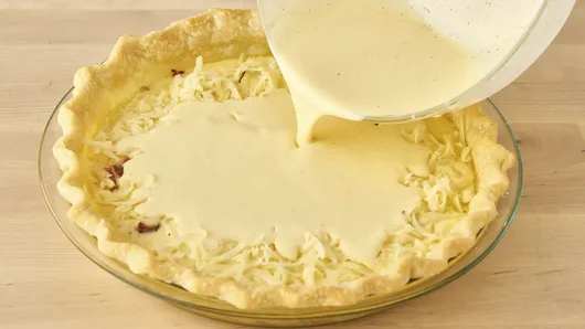 var configuration = {"title":"Quiche Lorraine","introduction":"Ooh, the indulgence! This quintessential breakfast or brunch quiche is a masterful combination of bacon, Swiss cheese, cream, and seasonings, all tucked into a flaky Pillsbury™ crust. It’s a perfect choice for a family breakfast or when company’s coming for brunch.","servingSize":"1 Serving","image":{"small":{"media":"(min-width: 0px)","src":"https://mojo.generalmills.com/api/public/content/_cIUQusdO0umEwXcpzcowQ_webp_base.webp?v=b7bb470f\u0026t=e724eca7b3c24a8aaa6e089ed9e611fd"},"medium":{"media":"(min-width: 500px)","src":"https://mojo.generalmills.com/api/public/content/_cIUQusdO0umEwXcpzcowQ_webp_base.webp?v=b7bb470f\u0026t=191ddcab8d1c415fa10fa00a14351227"},"large":{"media":"(min-width: 767px)","src":"https://mojo.generalmills.com/api/public/content/_cIUQusdO0umEwXcpzcowQ_webp_base.webp?v=b7bb470f\u0026t=191ddcab8d1c415fa10fa00a14351227"},"alt":"Quiche Lorraine"},"contributor":{"label":"By","name":"Pillsbury Kitchens","profileUrl":"/about-us","displayDate":{"label":"Updated","date":"Dec 7, 2023"}},"ingredientGroups":[{"ingredients":[{"quantity":"1","description":"crust from 1 box (14.1 oz) refrigerated Pillsbury™ Pie Crusts (2 Count), softened as directed on box ","productLink":"/products/pie-crust/refrigerated-pie-crust"},{"quantity":"8","description":"slices bacon, chopped"},{"quantity":"1/3","description":"cup finely chopped onion"},{"quantity":"4","description":"eggs"},{"quantity":"1 1/2","description":"cups heavy whipping cream or half-and-half"},{"quantity":"1/4","description":"teaspoon black pepper"},{"quantity":"1/8","description":"teaspoon ground red pepper (cayenne)"},{"quantity":"1","description":"cup shredded Swiss or Gruyère cheese (4 oz)"}]}],"steps":[{"description":"Heat oven to 425°F. Place pie crust in 9-inch glass pie plate as directed on box for One-Crust Filled Pie. Carefully line pie crust with a double thickness of foil, gently pressing foil to bottom and side of crust. Let foil extend over edge to prevent excessive browning. Bake 10 minutes. Carefully remove foil; bake 2 to 4 minutes longer or until crust just begins to brown and is set. Remove from oven. If crust bubbles, gently push bubbles down with back of spoon. Reduce oven temperature to 325°F. ","stepShotImageUrl":"//mojo.generalmills.com/api/public/content/qBEsWlajDEyT5iUcZqqUcQ_webp_base.webp?v=f0e14af7\u0026t=51a43a57af4046789e5a7f20567b1195"},{"description":"Meanwhile, in 10-inch skillet, cook bacon over medium heat, stirring occasionally, until crisp. Remove bacon with slotted spoon; drain on paper towels. Drain all but 2 teaspoons bacon drippings from skillet. Cook onion in bacon drippings over medium heat 3 to 5 minutes, stirring occasionally, until softened and light golden brown. Set aside.","stepShotImageUrl":"//mojo.generalmills.com/api/public/content/vt8LgnJgw0WMT-kmKA0e-g_webp_base.webp?v=c2113c95\u0026t=51a43a57af4046789e5a7f20567b1195"},{"description":"In large bowl, beat eggs slightly with fork or whisk. Beat in whipping cream, black pepper and red pepper. Sprinkle bacon, onion and cheese into warm pie crust. Gently pour egg mixture into crust.","stepShotImageUrl":"//mojo.generalmills.com/api/public/content/wvFQAw3JrE-jgg41RGy-yQ_webp_base.webp?v=f8f3f900\u0026t=51a43a57af4046789e5a7f20567b1195"},{"description":"Bake 45 to 50 minutes or until knife inserted in center comes out clean. Let stand 10 minutes before cutting.","stepShotImageUrl":"//mojo.generalmills.com/api/public/content/LsO1mIOG1UGeIM-YLSqaDg_webp_base.webp?v=11188e88\u0026t=51a43a57af4046789e5a7f20567b1195"}],"tips":[{"title":"","description":"This quiche Lorraine recipe is so easy to make with flaky Pillsbury™ pie crust! The indulgent flavors of bacon and Swiss cheese combine in an irresistible breakfast pie.","category":"Rich Snippet","tipShots":[]},{"title":"","description":"Want to use leftover or precooked bacon? You will need 3/4 cup cooked, crumbled bacon for this recipe. Cook the onions in 2 teaspoons of olive oil or butter.","category":"Substitution","tipShots":[]},{"title":"","description":"Be sure to press together any small tears or holes in the pie crust before baking to prevent the egg mixture from seeping through the crust.","category":"Method Note","tipShots":[]},{"title":"","description":"For a fresh pop of bright, herbal flavor, top with chopped Italian flat-leaf parsley or sliced green onion.","category":"Presentation/Garnish","tipShots":[]},{"title":"","description":"\u003cb\u003eSeafood Quiche:\u003c/b\u003e Substitute 1 cup chopped cooked crabmeat (patted dry), imitation crabmeat, cooked shrimp or salmon for the bacon. Use 1/3 cup finely chopped green onions for the onion; add 1/2 teaspoon salt.","category":"Variation","tipShots":[]},{"title":"","description":"\u003cb\u003eSpinach Quiche:\u003c/b\u003e Substitute 1 box (9 oz) frozen chopped spinach, thawed and squeezed to drain, for the bacon. Sprinkle over onion and cheese.","category":"Variation","tipShots":[]},{"title":"","description":"Quiche is such a delicious way to enjoy eggs in the morning! For more quiche recipes, try our \u003ca href=\u0022https://www.pillsbury.com/recipes/three-cheese-quiche/5916e00a-2c97-4904-90d1-143b0d54bd19\u0022\u003ethree cheese\u003c/a\u003e or \u003ca href=\u0022https://www.pillsbury.com/recipes/broccoli-mushroom-quiche/e5386282-4e9b-4b0d-b090-dff6d10b180d\u0022\u003ebroccoli-mushroom\u003c/a\u003e recipes next!","category":"Editorial","tipShots":[]},{"title":"","description":"Kitchen Tested: 11/2023.","category":"Kitchen Tested","tipShots":[]}],"kitchenTips":[{"title":"","description":"Want to use leftover or precooked bacon? You will need 3/4 cup cooked, crumbled bacon for this recipe. Cook the onions in 2 teaspoons of olive oil or butter.","category":"Substitution","tipShots":[]},{"title":"","description":"Be sure to press together any small tears or holes in the pie crust before baking to prevent the egg mixture from seeping through the 