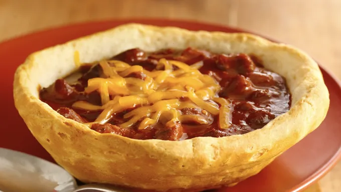 Three ingredients are all you need to make these hot and tasty bread cups filled with chili and cheese! From Brenda Merrick, Bake-Off® Monthly Challenge.