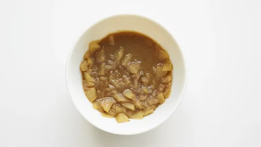 Step2Microwave on High 10 minutes. Cool slightly. For chunky applesauce, use potato masher or hand mixer to blend to desired thickness. For smooth applesauce, process in food processor until smooth. Serve warm, or refrigerate until cool.