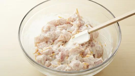 Step3Separate dough into 8 biscuits; cut each into sixths. Gently stir into chicken mixture. Spoon into baking dish. Sprinkle with remaining 1/2 cup shredded cheese.