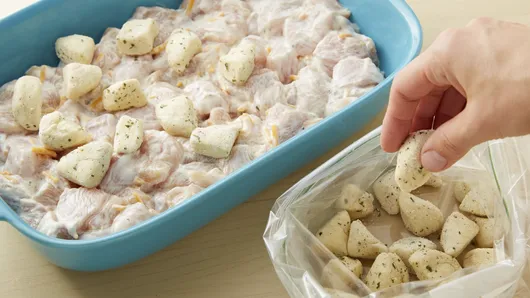 Short on time? Turn a few simple ingredients into a satisfying weeknight casserole. This cheesy ranch chicken bake is a hearty dump dinner you'll want to add to your meal rotation. Your family will love the combination of cheesy chicken and Pillsbury™ Biscuits, and you'll love that prep and cleanup for this chicken ranch bake are simple as can be.
