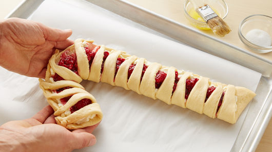 Whether you need to distract the kids from opening presents on Christmas morning or feed your overnight guests around the holidays, this candy cane-shaped Danish filled with fresh raspberries and cream cheese is the way to do it.