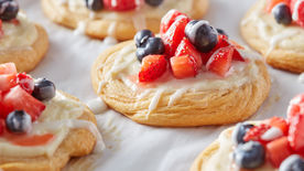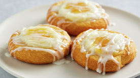 Bake 16 to 20 minutes or until golden brown. Cool 5 minutes on cookie sheet. Use spatula to carefully help slide Danish from parchment to serving platter, loosening edges with spatula first, if needed. In small bowl, mix powdered sugar and 1/2 teaspoon of the milk until well blended. If too thick to drizzle, add additional drops of milk. Drizzle with fork over top. Serve warm.