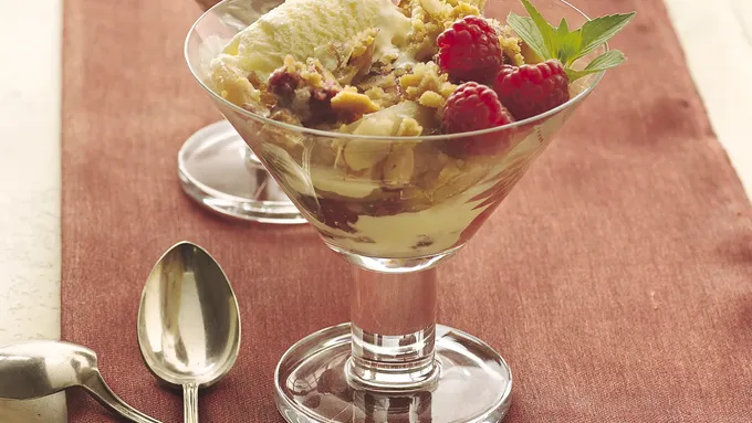 Step4To serve, spoon about 1/2 cup hot fruit mixture into each individual dessert dish. Top each with 2 pastry pieces.