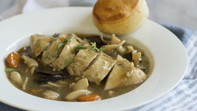 Step3Cover; cook on Low heat setting 8 hours or until meat and vegetables are tender. Garnish with additional thyme.