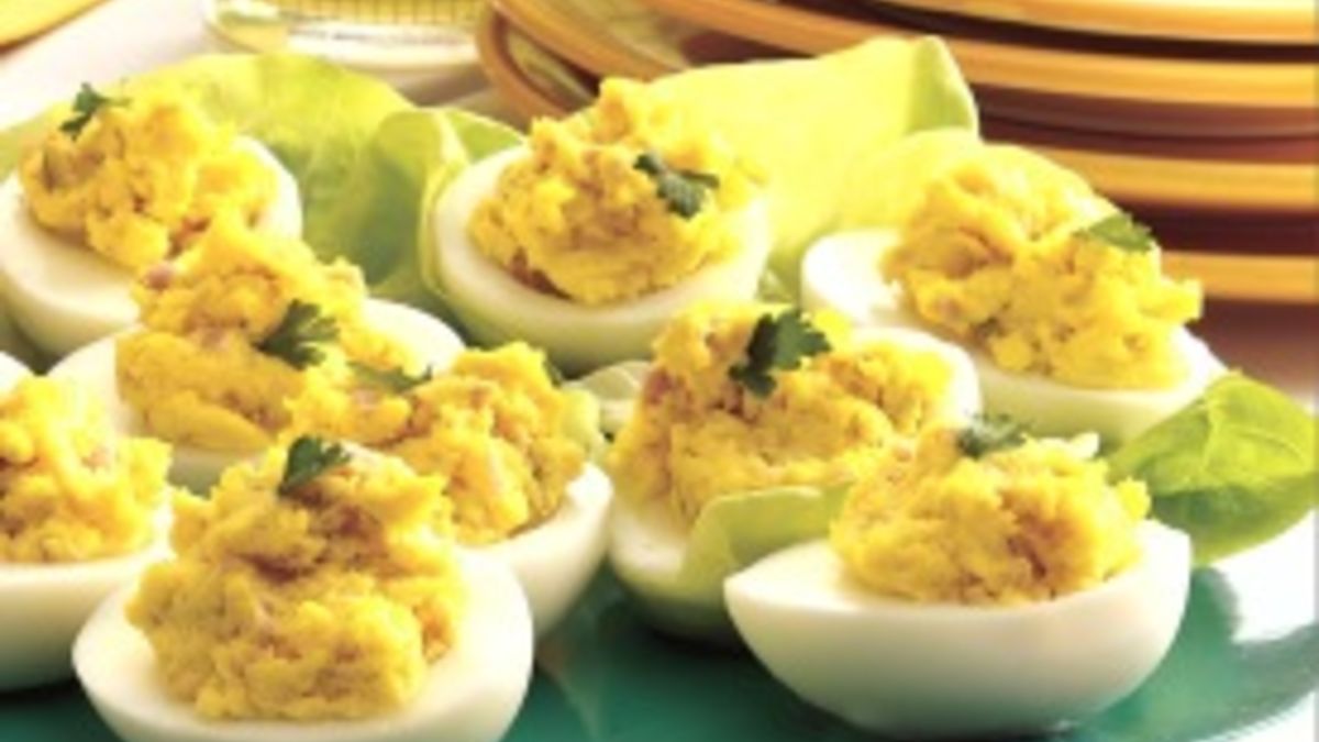 Pickle relish and ham give these deviled eggs an unexpected flavor punch.