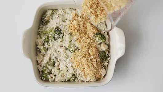 This all-in-one comforting chicken and rice dinner is made special with a delicious, buttery cracker topping.