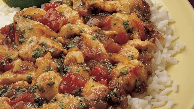 Step4In small bowl, combine salsa and all remaining ingredients; mix well. Add to chicken. Reduce heat to medium; cover and cook 20 minutes or until chicken is no longer pink, stirring occasionally.