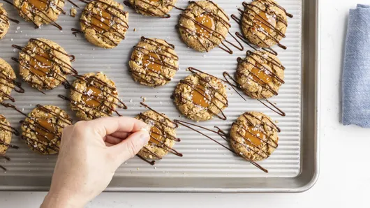Drizzle with melted chocolate, and add a pinch of flaky sea salt. Let the cookies sit until the chocolate sets—if you can wait that long!