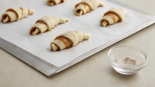 Step3Place on cookie sheet. In small bowl, mix 2 teaspoons sugar and 1/8 teaspoon pumpkin pie spice. Sprinkle over filled crescents.