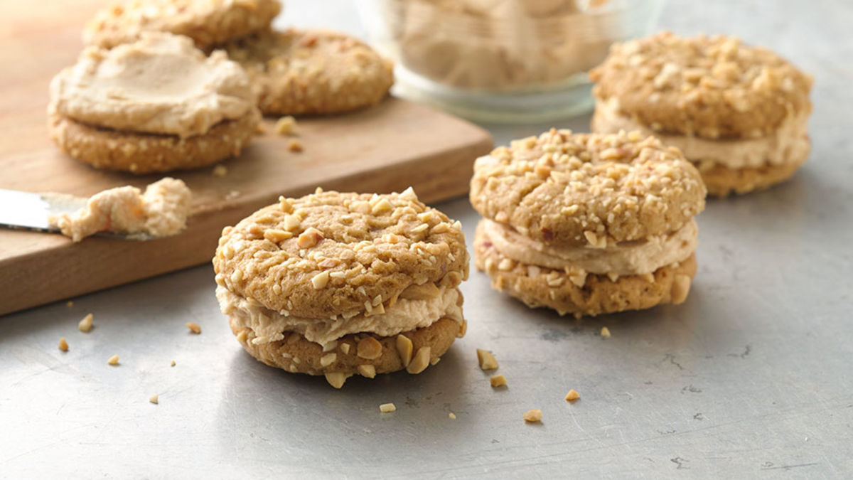 Step4Spread mixture on bottoms of 16 of the cookies. Top with remaining cookies, bottom sides down.