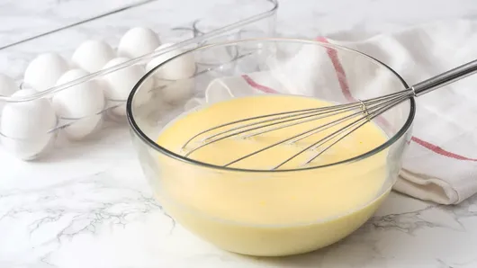 Step4In medium bowl, beat 7 eggs and 1 3/4 cups milk with whisk until smooth; season with salt and pepper to taste. Pour egg mixture over sausage and spinach mixture.