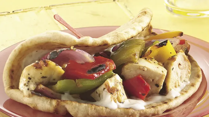 Step2When ready to grill, place kabobs on gas grill over medium heat or on charcoal grill 4 to 6 inches from medium coals. Cook about 6 minutes or until vegetables are tender and bread is golden brown, turning once.