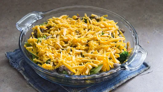 Step3In 10-inch skillet, cook sausage until thoroughly cooked and no longer pink, using wooden spoon to break up and crumble. Add frozen vegetables; cook 3 minutes longer or until thoroughly heated. Drain and discard any excess liquid. Spoon sausage mixture onto omelet in pie plate. Top with remaining 1 cup cheese.