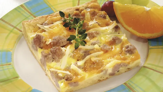 Sausage and eggs meet pizza and cheese to create a delicious breakfast and brunch recipe.