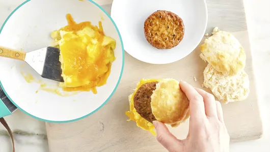 Making your favorite fast-food breakfast sandwich has never been easier! Bake frozen biscuits while you prepare the eggs and sausage, and in 40 minutes, you’ll have a breakfast that’s miles better than any drive-thru option. Here's how to make a sausage, egg and cheese sandwich that's sure to brighten your morning.