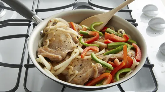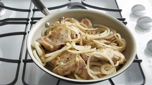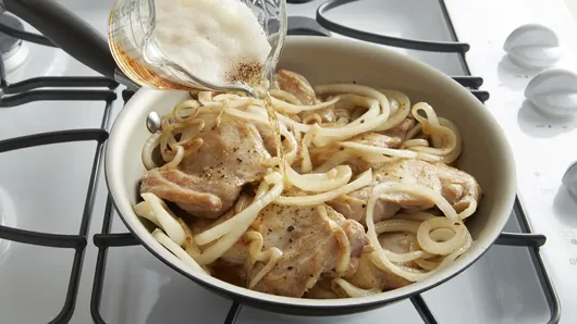 Step1In 10-inch skillet, heat oil over medium-high heat. Add chicken; sprinkle with salt and pepper. Add onion slices; cook 4 to 5 minutes, turning chicken once, until chicken is brown on all sides.