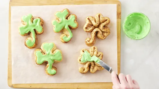 var configuration = {"title":"Shamrock Cinnamon Rolls","introduction":"Get in the spirit of St. Patrick’s Day with these shamrock-shaped cinnamon rolls featuring festive green icing. You don’t even need a knife to cut them to form this fun shape! To create the \u0022shamrock,\u0022 you simply unroll each roll, then reroll it into three heart-shaped leaves and a stem. There you have it—the perfect treat to celebrate this early spring holiday.","servingSize":"1 Cinnamon Roll","image":{"small":{"media":"(min-width: 0px)","src":"https://mojo.generalmills.com/api/public/content/X5OZAVJvGk2cSRGASfQYEw_webp_base.webp?v=4485b7f0\u0026t=e724eca7b3c24a8aaa6e089ed9e611fd"},"medium":{"media":"(min-width: 500px)","src":"https://mojo.generalmills.com/api/public/content/X5OZAVJvGk2cSRGASfQYEw_webp_base.webp?v=4485b7f0\u0026t=191ddcab8d1c415fa10fa00a14351227"},"large":{"media":"(min-width: 767px)","src":"https://mojo.generalmills.com/api/public/content/X5OZAVJvGk2cSRGASfQYEw_webp_base.webp?v=4485b7f0\u0026t=191ddcab8d1c415fa10fa00a14351227"},"alt":"Shamrock Cinnamon Rolls"},"contributor":{"label":"By","name":"Pillsbury Kitchens","profileUrl":"/about-us","displayDate":{"label":"Updated","date":"Feb 28, 2023"}},"ingredientGroups":[{"ingredients":[{"quantity":"1","description":"can (17.5 oz) refrigerated Pillsbury™ Grands!™ Cinnamon Rolls with Original Icing (5 Count) ","productLink":"/products/cinnamon-rolls/grands-original-cinnamon-rolls-with-icing"},{"quantity":"","description":"Green food color"}]}],"steps":[{"description":"Heat oven to 350°F. Line cookie sheet with cooking parchment paper. Separate dough into 5 rolls. Unroll each roll into a long strip of dough on work surface.","stepShotImageUrl":"//mojo.generalmills.com/api/public/content/7YIEzx55ak2ZlNr1Fj3YXQ_webp_base.webp?v=761c197e\u0026t=51a43a57af4046789e5a7f20567b1195"},{"description":"Working with one strip of dough at a time, fold 5-inch sections of dough back and forth into three heart-shaped leaves, pinching the point of each leaf as you go. ","stepShotImageUrl":"//mojo.generalmills.com/api/public/content/r_3BZnftJke2Txo0VbiqHQ_webp_base.webp?v=5f85608f\u0026t=51a43a57af4046789e5a7f20567b1195"},{"description":"Bring the points of all three leaves together, and swirl the end of the remaining 5-inch section of dough to make the shamrock stem. Place on cookie sheet.","stepShotImageUrl":"//mojo.generalmills.com/api/public/content/DSS0Kstz5U2lAf9obZplwg_webp_base.webp?v=cbef81ed\u0026t=51a43a57af4046789e5a7f20567b1195"},{"description":"Bake 14 to 18 minutes or until golden brown and baked through."},{"description":"Meanwhile, in small bowl, place icing (from can). Tint icing with food color to desired color, using fork or small whisk to combine. Decorate shamrock cinnamon rolls with tinted icing, using photo as a guide.","stepShotImageUrl":"//mojo.generalmills.com/api/public/content/HretM8ELaUyZ3L97yi5CUw_webp_base.webp?v=5743d36f\u0026t=51a43a57af4046789e5a7f20567b1195"}],"tips":[{"title":"","description":"To give your St. Patrick\u0027s Day cinnamon rolls even more flair, decorate these cute shamrocks with gold sprinkles after icing, or nod to the flag of Ireland with green, white and orange sprinkles.","category":"Presentation/Garnish","tipShots":[]},{"title":"","description":"Use your favorite flavor of Pillsbury™ Grands!™ Cinnamon Rolls in place of the original flavor.","category":"Substitution","tipShots":[]},{"title":"","description":"Instead of spooning and spreading icing over the Shamrock Cinnamon Rolls, you can also drizzle the icing over the top of each roll using a spoon.","category":"Method Note","tipShots":[]},{"title":"","description":"Kitchen Tested - 2/2023.","category":"Kitchen Tested","tipShots":[]}],"kitchenTips":[{"title":"","description":"To give your St. Patrick\u0027s Day cinnamon rolls even more flair, decorate these cute shamrocks with gold sprinkles after icing, or nod to the flag of Ireland with green, white and orange sprinkles.","category":"Presentation/Garnish","tipShots":[]},{"title":"","description":"Use your favorite flavor of Pillsbury™ Grands!™ Cinnamon Rolls in place of the original flavor.","category":"Substitution","tipShots":[]},{"title":"","description":"Instead of spooning and spreading icing over the Shamrock Cinnamon Rolls, you can also drizzle the icing over the top of each roll using a spoon.","category":"Method Note","tipShots":[]}],"additionalContent":[],"faq":[],"tipCategories":[{"categoryName":"Kitchen Tested","heading":"More About This Recipe","cssClass":"recipePartStory","expandOnInit":false,"expandText":"More +","collapseText":"Less -","expandEventName":"","collapseEventName":"","image":"","tips":[{"title":"","description":"Kitchen Tested - 2/2023.","category":"Kitchen Tested","tipShots":[]}],"isExpandable":false},{"categoryName":"Method Note","heading":"","cssClass":"recipePartMethodNote","expandOnInit":false,"expandText":"More +","collapseText":"Less -","expandEventName":"","collapseEventName":"","image":"","tips":[{"title":"","description":"Instead of spooning and spreading icing over the Shamrock Cinnamon Rolls, you can also drizzle the icing over the top of each roll using a spoon.","category":"Method Note","tipShots":[]}],"isExpandable":false}],"nutritionInfo":{"configuration":{"showAsTable":false,"noNutritionInformationAvailableMessage":"No nutrition information available for this recipe","poweredByText":"\u003cp\u003eNutrition information for this recipe is estimated using a leading nutrition calculation application, but is an estimate only. Actual nutrition values will vary based on the exact ingredients or brands you may use.\u003c/p\u003e\n\u003ca href=\u0022http://developer.edamam.com\u0022\u003ePowered By \u003cimg src=\u0022-/media/C4F33FD467AB4A3AB59AAC4F6306AB04.ashx\u0022 alt=\u0022Edamam\u0022 /\u003e\u003c/a\u003e","nutritionChartTitle":"Nutrition Facts","nutritionInformationLabel":"Nutrition","servingSizeText":"Serving Size:","dailyValuesDisclaimer":"