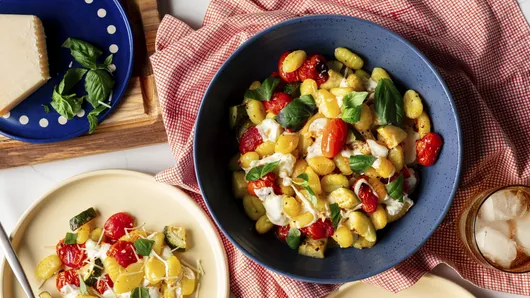 var configuration = {"title":"Sheet-Pan Gnocchi","introduction":"\u003cp\u003eEven on the busiest evenings, Pillsbury is here to help you score a dinner win. When things get hectic (and extra dishes are a deal-breaker) it’s good to have a no-fail meal that’s big on flavor and low on effort. Enter: Sheet-Pan Tomato Mozzarella Gnocchi! This easy gnocchi recipe is all about simplicity and flavor, combining soft, pillowy gnocchi with juicy cherry tomatoes and zucchini, gooey mozzarella, and fresh herbs—all roasted together on a single sheet pan. The magic happens right in the oven, where the tomatoes burst and create a light, tangy sauce that covers the gnocchi, while the mozzarella melts into a creamy, stretchy delight. But the best part of this caprese gnocchi is next to zero cleanup. With just one pan to wash, you can spend less time at the sink and more time enjoying your meal.\u003c/p\u003e\u003cp\u003eThis simple and delicious sheet-pan gnocchi is a guaranteed crowd-pleaser. Plus, it’s super easy to make it your own. Toss in some extra veggies like spinach or bell peppers, or even add cooked sausage or chicken for extra protein. It’s a recipe that’s as flexible as your schedule needs it to be, making it an amazing go-to option for nights when you want something homemade but just can’t spend hours in the kitchen. This tomato mozzarella gnocchi is the weeknight winner you’ve been waiting for!\u003c/p\u003e","servingSize":"1 Serving","image":{"small":{"media":"(min-width: 0px)","src":"https://mojo.generalmills.com/api/public/content/beUatkizSQOmvPF6PUQaAw_webp_base.webp?v=26899bb7\u0026t=e724eca7b3c24a8aaa6e089ed9e611fd"},"medium":{"media":"(min-width: 500px)","src":"https://mojo.generalmills.com/api/public/content/beUatkizSQOmvPF6PUQaAw_webp_base.webp?v=26899bb7\u0026t=191ddcab8d1c415fa10fa00a14351227"},"large":{"media":"(min-width: 767px)","src":"https://mojo.generalmills.com/api/public/content/beUatkizSQOmvPF6PUQaAw_webp_base.webp?v=26899bb7\u0026t=191ddcab8d1c415fa10fa00a14351227"},"alt":"Sheet-Pan Gnocchi"},"contributor":{"label":"By","name":"Created by Nick","profileUrl":"/about-us/nick","displayDate":{"label":"Updated","date":"Jun 12, 2025"}},"ingredientGroups":[{"ingredients":[{"quantity":"2","description":"packages (32 ounces total) refrigerated or shelf stable gnocchi"},{"quantity":"2","description":"pints cherry tomatoes"},{"quantity":"1","description":"large zucchini, sliced into 1/2”-thick quarters"},{"quantity":"4","description":"garlic cloves, minced"},{"quantity":"3","description":"tablespoons extra virgin olive oil"},{"quantity":"2","description":"tablespoons butter, diced"},{"quantity":"1/4","description":"teaspoon crushed red pepper flakes"},{"quantity":"1/2","description":"teaspoon salt"},{"quantity":"1/4","description":"teaspoon freshly ground black pepper"},{"quantity":"8","description":"ounces pearl mozzarella"},{"quantity":"1/4","description":"cup grated Parmesan cheese, for garnish"},{"quantity":"","description":"Torn basil leaves, for garnish"}]}],"steps":[{"description":" Place an oven rack in the center of the oven. Heat the oven to 425°F.","stepShotImageUrl":"//mojo.generalmills.com/api/public/content/aXyDZmtYSS2m7w7WCM1oZA_webp_base.webp?v=de53d055\u0026t=51a43a57af4046789e5a7f20567b1195"},{"description":"In a large bowl, combine the gnocchi, tomatoes, zucchini, garlic, olive oil, butter, and crushed red pepper flakes, salt, and black pepper. Toss to coat. Transfer the mixture to a rimmed baking sheet.","stepShotImageUrl":"//mojo.generalmills.com/api/public/content/uUaHsRILRlmajvFwylnseQ_webp_base.webp?v=2eae05e4\u0026t=51a43a57af4046789e5a7f20567b1195"},{"description":"Roast the gnocchi and vegetables on the center rack for 15 to 20 minutes until the tomatoes and zucchini begin to brown.","stepShotImageUrl":"//mojo.generalmills.com/api/public/content/Dk-PdqYPTE2OJz9D3pGHIg_webp_base.webp?v=a952350a\u0026t=51a43a57af4046789e5a7f20567b1195"},{"description":"Stir to incorporate the melted butter. Scatter the mozzarella cheese on top and turn the oven to high broil. Cook until the mozzarella is melted and the tomatoes are slightly charred, 2 to 3 minutes.","stepShotImageUrl":"//mojo.generalmills.com/api/public/content/DFBweEO2TKmXy1z-Fe6IhA_webp_base.webp?v=df624016\u0026t=51a43a57af4046789e5a7f20567b1195"},{"description":"Sprinkle the gnocchi with Parmesan and torn basil leaves. Serve hot.","stepShotImageUrl":"//mojo.generalmills.com/api/public/content/xFxAu-MBRUeDDkC9n5-qzg_webp_base.webp?v=e6655a76\u0026t=51a43a57af4046789e5a7f20567b1195"}],"tips":[{"title":"","description":"An easy, one-pan recipe that’s packed with flavor. Make this sheet-pan gnocchi on busy weeknights or whenever you need a quick, delicious meal.","category":"Rich Snippet","tipShots":[]},{"title":"","description":"For a fun, flavorful twist, try substituting or adding in other chopped vegetables like bell peppers, onions, mushrooms, or whatever your family likes.","category":"Substitution","tipShots":[]},{"title":"","description":"Make your one pan tomato mozzarella gnocchi even easier! Line the bottom and edges of the baking pan with aluminum foil for super low-effort clean up.","category":"Techniques","tipShots":[]},{"title":"","description":"\u003cp\u003eTry garnishing your sheet-pan gnocchi with lemon zest and serving with lemon wedges. It’s an easy way to kick up the flavor and add a little extra brightness.\u003c/p\u003e","category":"Presentation/Garnish","tipShots":[]}],"kitchenTips":[{"title":"","description":"For a fun, flavorful twist, try substituting or adding in other chopped vegetables like bell peppers, onions, mushrooms, or whatever your family likes.","category":"Substitution","tipShots":[]},{"title":"","description":"Make your one pan tomato mozzarella gnocchi even easier! Line the bottom and edges of the baking pan with aluminum foil for super low-effort clean up.","category":"Techniques","tipShots":[]},{"title":"","description":"\u003cp\u003eTry g