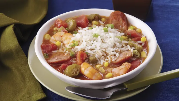 Step3Add garlic; cook and stir 30 to 60 seconds or until softened. Add tomatoes, broth, okra and Cajun seasoning; mix well. Bring to a boil. Reduce heat to low; partially cover and cook 25 to 30 minutes to blend flavors, stirring occasionally.