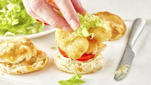 Po' boy fans, this one's for you! Make your favorite southern-style meal any day of the week with this simple, tasty shrimp po' boy recipe, made easy with frozen Pillsbury™ Garlic Cheddar Biscuits and breaded butterfly shrimp. Bake to golden brown perfection, assemble your po' boys, and enjoy a delicious dinner that comes together faster than you can say “let the good times roll!”