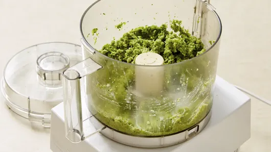 Step4In food processor, place broccoli and pine nuts. Cover; process until well blended to make pesto. Spread pesto over dough. Top with sausage, cheese and tomato. Sprinkle with 1/4 teaspoon salt and 1/4 teaspoon pepper; drizzle with remaining 1 tablespoon olive oil.