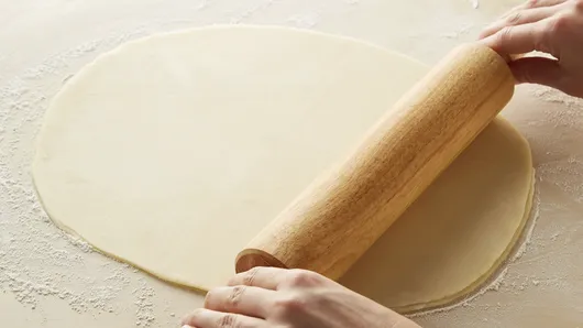 Step1Heat oven to 400°F. On lightly floured surface, unroll and stack crusts one on top of the other. Roll to 17x12-inch rectangle.