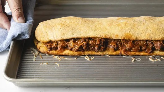 var configuration = {"title":"Sloppy Joe Meatloaf","introduction":"\u003cp\u003eThis Sloppy Joe Meatloaf, a finalist in the 40th Pillsbury Bake-Off® Contest, is a cozy, crowd-pleasing twist on two family favorites. Hearty ground beef simmered in an herbed tomato sauce is topped with melty mozzarella, then baked between layers of Pillsbury™ Original French Bread dough for a savory, sliceable hot supper sandwich that feels familiar but a little more fun. It’s hearty enough for weeknight dinners, casual gatherings, or anytime you want comfort food with a twist—no buns required.\u003c/p\u003e","servingSize":"1 Serving","image":{"small":{"media":"(min-width: 0px)","src":"https://mojo.generalmills.com/api/public/content/qz0zJTRCRWKhltMxikF6Iw_webp_base.webp?v=b71fab54\u0026t=e724eca7b3c24a8aaa6e089ed9e611fd"},"medium":{"media":"(min-width: 500px)","src":"https://mojo.generalmills.com/api/public/content/qz0zJTRCRWKhltMxikF6Iw_webp_base.webp?v=b71fab54\u0026t=191ddcab8d1c415fa10fa00a14351227"},"large":{"media":"(min-width: 767px)","src":"https://mojo.generalmills.com/api/public/content/qz0zJTRCRWKhltMxikF6Iw_webp_base.webp?v=b71fab54\u0026t=191ddcab8d1c415fa10fa00a14351227"},"alt":"Sloppy Joe Meatloaf"},"contributor":{"label":"By","name":"Edited by Mandy","profileUrl":"/about-us/mandy","displayDate":{"label":"Updated","date":"Feb 25, 2026"}},"ingredientGroups":[{"ingredients":[{"quantity":"1","description":"lb ground beef (at least 90% lean)"},{"quantity":"1","description":"small onion, chopped"},{"quantity":"1","description":"can (8 oz) tomato sauce"},{"quantity":"1","description":"tablespoon Pillsbury BEST® All Purpose or Unbleached Flour"},{"quantity":"1/4","description":"teaspoon dried basil leaves"},{"quantity":"1/4","description":"teaspoon dried oregano leaves"},{"quantity":"1/4","description":"teaspoon fennel seed"},{"quantity":"1","description":"can (11 oz) refrigerated Pillsbury™ Original French Bread","productLink":"/products/breads/pillsbury-original-french-bread-dough"},{"quantity":"1","description":"cup shredded mozzarella cheese (4 oz), divided"}]}],"steps":[{"description":"\u003cp\u003eHeat oven to 350°F. Spray baking sheet and large skillet with nonstick cooking spray. In sprayed skillet, combine ground beef and onion; cook until beef is thoroughly cooked, stirring frequently. Drain.\u003c/p\u003e","stepShotImageUrl":"//mojo.generalmills.com/api/public/content/E9su0lYoSR63XUTZuGus9A_webp_base.webp?v=e8080020\u0026t=51a43a57af4046789e5a7f20567b1195"},{"description":"\u003cp\u003eAdd tomato sauce, flour, basil, oregano, and fennel seed; mix well. Reduce heat to medium-low; simmer 5 minutes. Remove from heat.\u003c/p\u003e","stepShotImageUrl":"//mojo.generalmills.com/api/public/content/QuMwWDVEQzis_QmESP8atQ_webp_base.webp?v=9b8c4401\u0026t=51a43a57af4046789e5a7f20567b1195"},{"description":"\u003cp\u003eMeanwhile, remove dough from can; place on lightly floured surface. Cut loaf in half lengthwise. Roll each half to form 16x4-inch rectangle. Place 1 dough rectangle on sprayed baking sheet, being careful not to change shape.\u003c/p\u003e","stepShotImageUrl":"//mojo.generalmills.com/api/public/content/icdtn6X4QbaRBkLqCWw0Jg_webp_base.webp?v=0415fd60\u0026t=51a43a57af4046789e5a7f20567b1195"},{"description":"\u003cp\u003eStir 1/2 cup of the cheese into ground beef mixture. Spoon and spread mixture over dough rectangle on baking sheet. Sprinkle with remaining 1/2 cup cheese. Top with remaining dough rectangle.\u003c/p\u003e","stepShotImageUrl":"//mojo.generalmills.com/api/public/content/gIIzib10ROW2alHAjAKOwg_webp_base.webp?v=5bc2ffec\u0026t=51a43a57af4046789e5a7f20567b1195"},{"description":"\u003cp\u003eBake at 350°F for 25 to 30 minutes or until golden brown. Cut into slices.\u003c/p\u003e","stepShotImageUrl":"//mojo.generalmills.com/api/public/content/tQGmMUsQTPO05c-tOKqrIg_webp_base.webp?v=ba310e6d\u0026t=51a43a57af4046789e5a7f20567b1195"}],"tips":[{"title":"","description":"Savory, cheesy Sloppy Joe Meatloaf filling baked in between layers of Pillsbury™ Original French Bread—an easy, family-friendly comfort food dinner.","category":"Rich Snippet","tipShots":[]},{"title":"","description":"\u003cp\u003eYou can make the meat filling a day or two before making the Sloppy Joe Meatloaf, storing it in an airtight container in the fridge.\u003c/p\u003e","category":"Do-Ahead","tipShots":[]},{"title":"","description":"\u003cp\u003eTo help cut individual slices of Sloppy Joe Meatloaf, put a toothpick in the slice you’re about to cut to hold the filling and bread together.\u003c/p\u003e","category":"Techniques","tipShots":[]}],"kitchenTips":[{"title":"","description":"\u003cp\u003eYou can make the meat filling a day or two before making the Sloppy Joe Meatloaf, storing it in an airtight container in the fridge.\u003c/p\u003e","category":"Do-Ahead","tipShots":[]},{"title":"","description":"\u003cp\u003eTo help cut individual slices of Sloppy Joe Meatloaf, put a toothpick in the slice you’re about to cut to hold the filling and bread together.\u003c/p\u003e","category":"Techniques","tipShots":[]}],"additionalContent":[{"title":"Recipe Ingredients ","description":"\u003cp\u003eThese simple ingredients work together to deliver bold flavor, satisfying texture, and that unmistakable sloppy joe vibe.\u003c/p\u003e\u003cp\u003e\u003cstrong\u003ePillsbury™ Original French Bread: \u003c/strong\u003eThis acts as a crust, holds the filling in place, and gives the dish a sliceable structure.\u003c/p\u003e\u003cp\u003e\u003cstrong\u003eGround Beef: \u003c/strong\u003eThis forms the hearty base of the meatloaf; we use meat that’s 90% lean to keep it less greasy, which makes it easier to slice. If you’d prefer, you can substitute ground turkey.\u003c/p\u003e\u003cp\u003e\u003cstrong\u003eTomato Sauce: \u003c/strong\u003eCreates the saucy, sloppy joe-inspired foundation that keeps the filling moist.\u003c/p\u003e\u003cp\u003e\u003cstrong\u003eOther Ingredients You’ll Need: \u003c/st