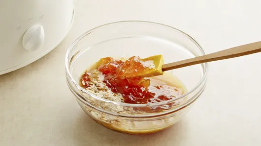 Step2In small bowl, stir apricot preserves, orange juice, onion soup mix and ginger until well blended. Spoon mixture over chicken in slow cooker.