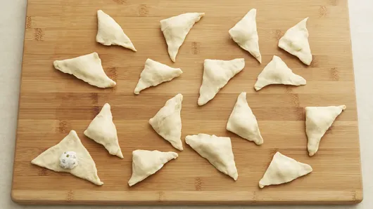 Place 1 teaspoon cream cheese in center of 1 triangle. Fold dough over cheese; press to seal.