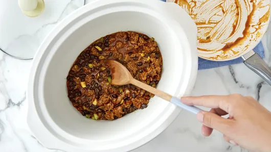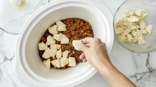 var configuration = {"title":"Slow-Cooker Beefy Taco Biscuit Casserole","introduction":"There’s no need to turn on the oven for this beefy, buttery biscuit-topped taco casserole! It\u0027s the ultimate comfort meal on chilly nights—and it\u0027s a cinch to pull together. Thanks to the slow cooker, this easy, cheesy casserole recipe gets dinner done with just a few minutes of prep and ingredients you probably already have on hand. Let\u0027s get (slow) cooking!","servingSize":"1 Serving","image":{"small":{"media":"(min-width: 0px)","src":"https://mojo.generalmills.com/api/public/content/WmilITMEjE-8BaSTI_pDDQ_webp_base.webp?v=231a6fe4\u0026t=e724eca7b3c24a8aaa6e089ed9e611fd"},"medium":{"media":"(min-width: 500px)","src":"https://mojo.generalmills.com/api/public/content/WmilITMEjE-8BaSTI_pDDQ_webp_base.webp?v=231a6fe4\u0026t=191ddcab8d1c415fa10fa00a14351227"},"large":{"media":"(min-width: 767px)","src":"https://mojo.generalmills.com/api/public/content/WmilITMEjE-8BaSTI_pDDQ_webp_base.webp?v=231a6fe4\u0026t=191ddcab8d1c415fa10fa00a14351227"},"alt":"Slow-Cooker Beefy Taco Biscuit Casserole"},"contributor":{"label":"By","name":"Pillsbury Kitchens","profileUrl":"/about-us","displayDate":{"label":"Updated","date":"Sep 14, 2022"}},"ingredientGroups":[{"ingredients":[{"quantity":"1","description":"lb ground beef (at least 80% lean) "},{"quantity":"1","description":"packet (1 oz) Old El Paso™ Original Taco Seasoning Mix"},{"quantity":"2/3","description":"cup water"},{"quantity":"1","description":"can (10 oz) Old El Paso™ Mild Red Enchilada Sauce"},{"quantity":"1","description":"can (15 oz) Progresso™ Black Beans, drained, rinsed"},{"quantity":"1/2","description":"cup thinly sliced green onions"},{"quantity":"2","description":"cups shredded Mexican cheese blend (8 oz)"},{"quantity":"4","description":"tablespoons butter, melted"},{"quantity":"1","description":"can (16.3 oz) refrigerated Pillsbury™ Grands!™ Southern Homestyle Buttermilk Biscuits (8 Count)","productLink":"/products/biscuits/grands-refrigerated-biscuits/homestyle-buttermilk"}]}],"steps":[{"description":"Spray 5- to 6-quart oval slow cooker with cooking spray. In 12-inch skillet, cook beef over medium-high heat 5 to 8 minutes, stirring frequently, until thoroughly cooked; drain. Stir in taco seasoning mix and water; heat to boiling. Reduce heat; simmer uncovered 3 to 4 minutes, stirring frequently, until thickened. Remove from heat.","stepShotImageUrl":"//mojo.generalmills.com/api/public/content/xUu1LvF0B06Njdt8TrjU_Q_webp_base.webp?v=2a356d9a\u0026t=51a43a57af4046789e5a7f20567b1195"},{"description":"Stir in enchilada sauce, beans and green onions. Stir in 1 cup of the cheese. Spread mixture evenly in bottom of slow cooker. ","stepShotImageUrl":"//mojo.generalmills.com/api/public/content/2k1pAGZ4VkW44XDZHtVmMA_webp_base.webp?v=650663bf\u0026t=51a43a57af4046789e5a7f20567b1195"},{"description":"In medium bowl, place melted butter. Separate dough into 8 biscuits. Cut each biscuit into 6 pieces; add to butter in bowl, and toss to coat. Place in even layer over beef mixture in slow cooker.","stepShotImageUrl":"//mojo.generalmills.com/api/public/content/H53XTsOe8USIffgXF3ty8A_webp_base.webp?v=e8fa4cdb\u0026t=51a43a57af4046789e5a7f20567b1195"},{"description":"Cover top of insert with large kitchen towel. Place slow-cooker lid on top of towel. (This will prevent condensation from dripping onto biscuits during cooking.) Cook on High heat setting 1 1/2 to 2 1/2 hours. Insert knife into center of casserole to test if biscuits are fully baked; outer edge of casserole will be deep golden brown.","stepShotImageUrl":"//mojo.generalmills.com/api/public/content/6YNQHFVDd0qkAPejAOz2RQ_webp_base.webp?v=df2eec40\u0026t=51a43a57af4046789e5a7f20567b1195"},{"description":"Top mixture with remaining cup of cheese. Return lid to slow cooker; cook 5 to 10 minutes longer or until cheese melts.","stepShotImageUrl":"//mojo.generalmills.com/api/public/content/rSgKVdNe806iZ-kDsQGc6w_webp_base.webp?v=4c2b58f8\u0026t=51a43a57af4046789e5a7f20567b1195"}],"tips":[{"title":"","description":"Resist the urge to mix the ingredients in the slow cooker, as that can make the sides of the slow cooker messy and lead to burning.","category":"Techniques","tipShots":[]},{"title":"","description":"You can use shredded pepper Jack, cheddar or Monterey Jack cheese in place of the Mexican cheese blend, if desired.","category":"Substitution","tipShots":[]},{"title":"","description":"Serve your finished casserole with additional toppings like chopped fresh cilantro leaves, chopped tomatoes, chopped avocados and sour cream.","category":"Serving Suggestions/Menu","tipShots":[]},{"title":"","description":"Kitchen Tested - 8/2022.","category":"Kitchen Tested","tipShots":[]}],"kitchenTips":[{"title":"","description":"Resist the urge to mix the ingredients in the slow cooker, as that can make the sides of the slow cooker messy and lead to burning.","category":"Techniques","tipShots":[]},{"title":"","description":"You can use shredded pepper Jack, cheddar or Monterey Jack cheese in place of the Mexican cheese blend, if desired.","category":"Substitution","tipShots":[]},{"title":"","description":"Serve your finished casserole with additional toppings like chopped fresh cilantro leaves, chopped tomatoes, chopped avocados and sour cream.","category":"Serving Suggestions/Menu","tipShots":[]}],"additionalContent":[],"faq":[],"tipCategories":[{"categoryName":"Kitchen Tested","heading":"More About This Recipe","cssClass":"recipePartStory","expandOnInit":false,"expandText":"More +","collapseText":"Less -","expandEventName":"","collapseEventName":"","image":"","tips":[{"title":"","description":"Kitchen Tested - 8/2022.","category":"Kitchen Tested","tipShots":[]}],"isExpandable":false}],"nutritionInfo":{"configuration":{"showAsTable":false,"noNutritionInformationAvailableMessage":"No nutrition information available for this recipe","poweredByText":"\u003cp\u003eNutrition information for this 