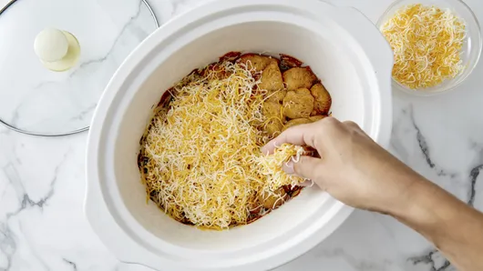 Top mixture with remaining cup of cheese. Return lid to slow cooker; cook 5 to 10 minutes longer or until cheese melts.