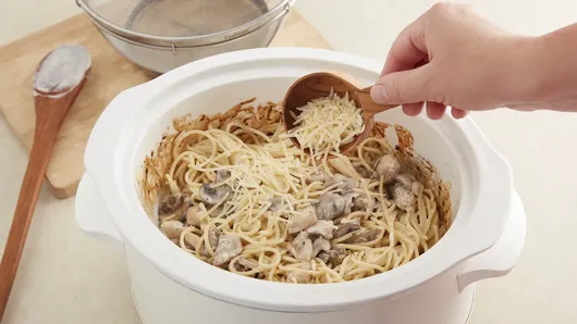 Rock the crock for a rich and flavorful twist on a classic dish. Simmer the sauce in the slow cooker and stir in hot pasta just before serving.