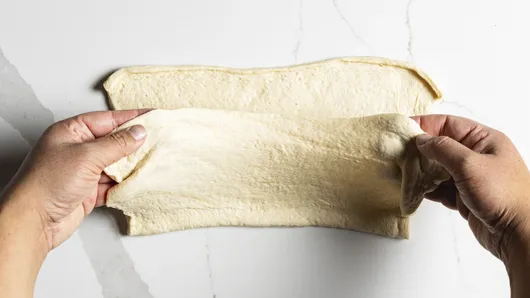 Spread pizza sauce evenly over the dough, along with half the sausage, pepperoni, and cheese, making sure to leave about 1/2 inch of space around the edges to create a “crust.” Repeat with another layer of toppings and cheese. Layering the toppings will weigh down the center of the dough and allow the edges to rise—but stick to just 2 layers. Otherwise, the crust won’t cook all the way through.