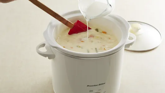 Step1Mix all ingredients except half-and-half in 3 1/2- to 4-quart slow cooker.