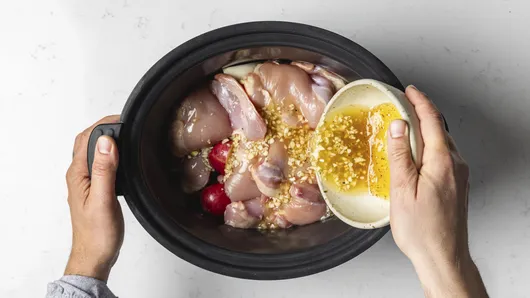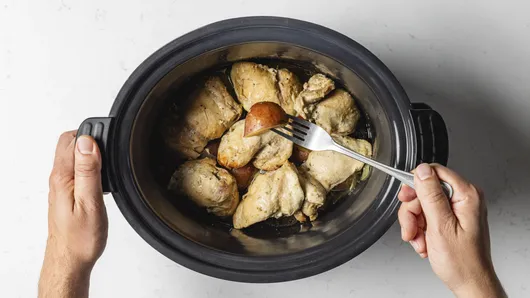 - Making chicken in the slow cooker is always a good idea. It’s one of the easiest ways to prep, no matter which part of the chicken you cook with; chicken breasts, chicken thighs and sometimes even whole chickens can be made in the slow cooker for a super flavorful, juicy chicken dinner. When cooking chicken thighs in the slow cooker, and really, cooking in the slow cooker in general, there are a few things you should keep in mind. First, don’t cook past the recommended time on the recipe. This can result in an overcooked dish pretty quickly. On the other hand, don’t remove the lid to check on your recipe. Slow cookers work because they trap heat inside the device and cook food at a low temperature for a long time. Taking the lid off will release of some of the heat, and it will take the slow cooker some time to warm back up, which means it will take your dish longer to cook than expected! Follow these slow cooker tips, and you’ll be an expert in no time. Ready to tackle your next chicken recipe? We have tons of top-rated dishes top-rated dishes for you to choose from.
