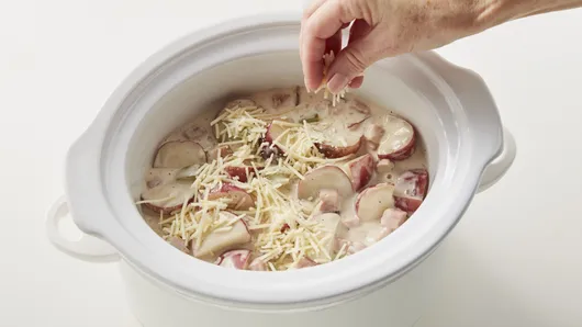 Red potatoes, ham, Alfredo sauce and Parmesan cheese combine effortlessly in this creamy meat-and-potato dish made in the slow cooker. Cozy and flavorful, it’s the perfect comfort food for a meal at home with your favorite people. Bonus: It preps in just 15 minutes!