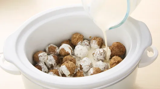 Step3In small bowl, stir whipping cream and cornstarch with whisk until well blended. Pour over meatballs. Cover; cook 10 minutes on High heat setting until thickened.