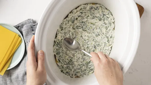 Slow cook the lasagna, covered, on Low for 4 hours, until the noodles are tender and the center of the lasagna registers 165°F on an instant-read thermometer.