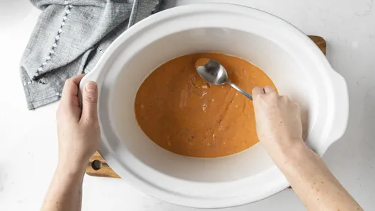 Spray the bottom of a 6-quart (or larger) slow cooker. Add 3/4 cup of sauce to the bottom of the slow cooker and spread to cover the bottom.