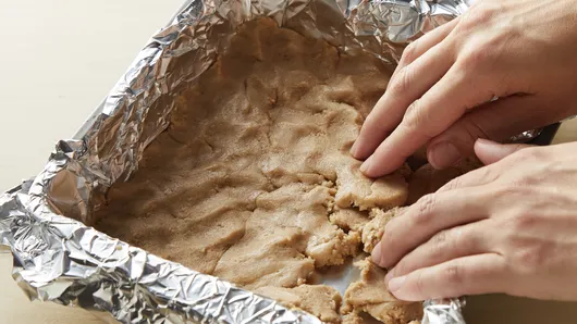 Heat oven to 350°F. Line 8-inch square pan with foil, allowing some to hang over edges of pan.