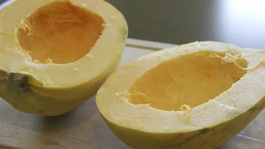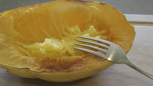 Step4Cool slightly. Using fork, gently remove strands of cooked squash. Measure out 6 cups of the squash, and place in large bowl.
