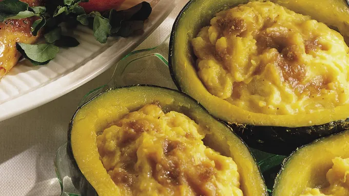 Place squash halves cut-side-down in an ungreased baking sheet with sides or a 3-quart baking dish.
