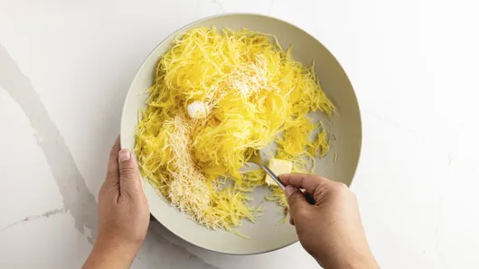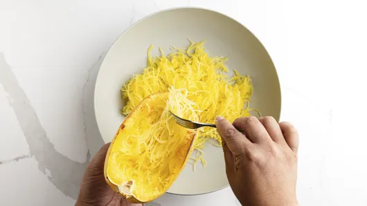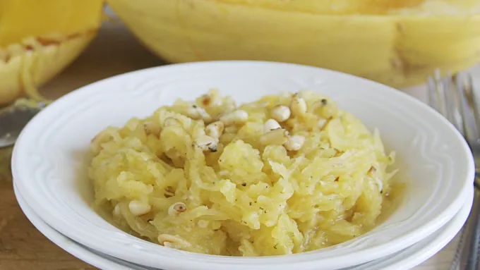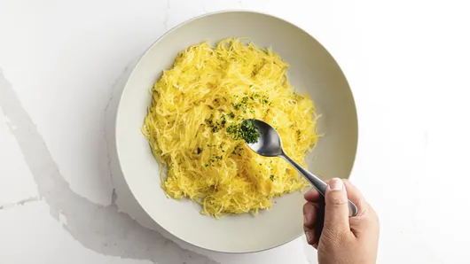 var configuration = {"title":"Spaghetti Squash","introduction":"\u003cp\u003eSpaghetti squash is one of our favorite veggie hacks—kids love that it looks like cheesy buttered noodles, and you\u0027ll love that it’s mostly vegetables. It’s a super versatile veggie, and a fun twist on traditional pasta night!\u003c/p\u003e\u003cp\u003eWondering how to cook spaghetti squash? It’s easy! It bakes in the oven until the inside pulls apart into golden, noodle-like strands. Whether you’re trying to sneak in more veggies or simply looking for a delicious way to mix things up, spaghetti squash gives you all the comfort of pasta with a little extra veggie power.\u003c/p\u003e\u003cp\u003eIt pairs well with everything from hearty meat sauces to fresh herbs and a drizzle of olive oil, but we especially love it topped with a generous sprinkle of Parmesan cheese—it’s one of our favorite spaghetti squash recipes. The savory cheese melts right into the warm strands, adding just the right amount of richness to each bite.\u003c/p\u003e","servingSize":"1 Serving","image":{"small":{"media":"(min-width: 0px)","src":"https://mojo.generalmills.com/api/public/content/-4KmbSX-Sw-S03jVhClJhg_webp_base.webp?v=173d0cd3\u0026t=e724eca7b3c24a8aaa6e089ed9e611fd"},"medium":{"media":"(min-width: 500px)","src":"https://mojo.generalmills.com/api/public/content/-4KmbSX-Sw-S03jVhClJhg_webp_base.webp?v=173d0cd3\u0026t=191ddcab8d1c415fa10fa00a14351227"},"large":{"media":"(min-width: 767px)","src":"https://mojo.generalmills.com/api/public/content/-4KmbSX-Sw-S03jVhClJhg_webp_base.webp?v=173d0cd3\u0026t=191ddcab8d1c415fa10fa00a14351227"},"alt":"Spaghetti Squash"},"contributor":{"label":"By","name":"Edited by Joanna","profileUrl":"/about-us/joanna","displayDate":{"label":"Updated","date":"Aug 29, 2025"}},"ingredientGroups":[{"ingredients":[{"quantity":"1","description":"medium spaghetti squash (about 2 1/2 lb)"},{"quantity":"3","description":"tablespoons butter"},{"quantity":"1/2","description":"cup shredded Parmesan cheese"},{"quantity":"3/4","description":"teaspoon salt"},{"quantity":"1/8","description":"teaspoon pepper"},{"quantity":"","description":"Chopped fresh Italian (flat-leaf) parsley, if desired"}]}],"steps":[{"description":"\u003cp\u003eHeat oven to 375°F. Cut squash in half lengthwise with sharp knife.\u003c/p\u003e","stepShotImageUrl":"//mojo.generalmills.com/api/public/content/36NrdHLbSWSVPXdSwdL6GQ_webp_base.webp?v=e705151e\u0026t=51a43a57af4046789e5a7f20567b1195"},{"description":"\u003cp\u003eScoop out and discard seeds.\u003c/p\u003e","stepShotImageUrl":"//mojo.generalmills.com/api/public/content/XQIdspevQVGb2uTKFXepBw_webp_base.webp?v=d3f5619b\u0026t=51a43a57af4046789e5a7f20567b1195"},{"description":"\u003cp\u003ePlace squash halves cut-side-down in an ungreased baking sheet with sides or a 3-quart baking dish.\u003c/p\u003e","stepShotImageUrl":"//mojo.generalmills.com/api/public/content/Ofnbdzk4TeCq3f_0DvshcQ_webp_base.webp?v=54e7ab9a\u0026t=51a43a57af4046789e5a7f20567b1195"},{"description":"\u003cp\u003eBake 45 to 50 minutes or until fork pierces flesh of squash easily. Remove squash from oven. Carefully turn squash over to cool for 10 minutes.\u003c/p\u003e","stepShotImageUrl":"//mojo.generalmills.com/api/public/content/N9DF2A17SjuqAzs4udfkJg_webp_base.webp?v=ed7b8d9a\u0026t=51a43a57af4046789e5a7f20567b1195"},{"description":"\u003cp\u003eScrape insides out with fork, then transfer into serving bowl.\u003c/p\u003e","stepShotImageUrl":"//mojo.generalmills.com/api/public/content/CTSCwYHVQQq_0Gz2ULawtA_webp_base.webp?v=ac0e348b\u0026t=51a43a57af4046789e5a7f20567b1195"},{"description":"\u003cp\u003eGently stir in butter, Parmesan cheese, salt, and pepper.\u003c/p\u003e","stepShotImageUrl":"//mojo.generalmills.com/api/public/content/zrL8fUDMSgCqfqCo7pTxNA_webp_base.webp?v=f2ce0a0b\u0026t=51a43a57af4046789e5a7f20567b1195"},{"description":"\u003cp\u003eGarnish with parsley.\u003c/p\u003e","stepShotImageUrl":"//mojo.generalmills.com/api/public/content/WX0xBFU9Qx6dYlal4bYvnw_webp_base.webp?v=87e77450\u0026t=51a43a57af4046789e5a7f20567b1195"}],"tips":[{"title":"","description":"Discover one of our favorite spaghetti squash recipes! See how to cook spaghetti squash easily and enjoy it with butter, Parmesan, and fresh herbs.","category":"Rich Snippet","tipShots":[]},{"title":"","description":"If your squash needs to be reheated after stirring in ingredients, place in microwavable serving dish; microwave uncovered on High just until heated. Do not stir too much, or it will lose its spaghetti-like texture.","category":"Recipe/Ingredient Facts","tipShots":[]},{"title":"","description":"Use a sharp chef’s knife to cut squash in half lengthwise.","category":"Techniques","tipShots":[]},{"title":"","description":"Kitchen Tested - 8/2016.","category":"Kitchen Tested","tipShots":[]}],"kitchenTips":[{"title":"","description":"If your squash needs to be reheated after stirring in ingredients, place in microwavable serving dish; microwave uncovered on High just until heated. Do not stir too much, or it will lose its spaghetti-like texture.","category":"Recipe/Ingredient Facts","tipShots":[]},{"title":"","description":"Use a sharp chef’s knife to cut squash in half lengthwise.","category":"Techniques","tipShots":[]}],"additionalContent":[{"title":"Recipe Ingredients","description":"\u003cp\u003eThis recipe keeps things simple—just a handful of ingredients that let the natural flavor and texture of spaghetti squash shine.\u003c/p\u003e\u003cp\u003e\u003cstrong\u003eSpaghetti Squash: \u003c/strong\u003eLook for one that feels firm and heavy for its size, with smooth, evenly colored skin—usually pale yellow. Avoid any with soft spots, cracks, or green patches, which can mean it’s underripe or starting to spoil.\u003c/p\u003e\u003cp\u003e\u003cstrong\u003eButter and Parmesan Cheese:\u003c/strong\u003e The butter adds creamy richness and the Parmesan adds salty, nutty, melty depth. It’s the perfect combination to 