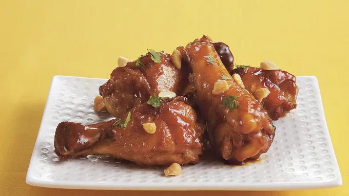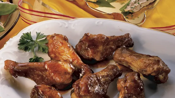 Step2In small bowl, mix remaining ingredients; pour over drummettes to cover.