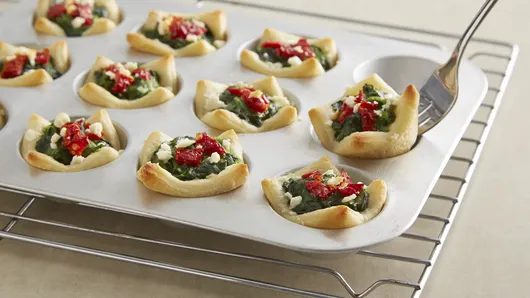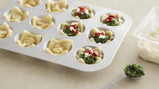 Step1Heat oven to 375°F. Spray 24 mini muffin cups with cooking spray. Make spinach as directed on box.