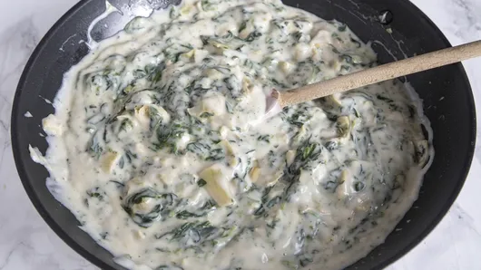 No more boring dinner! Turn the favorite appetizer dip into a creamy, veg-filled sauce for chicken.