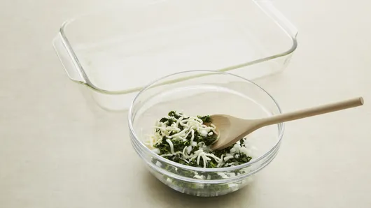Step1Heat oven to 375°F. Spray 13x9-inch (3-quart) glass baking dish with cooking spray. In small bowl, mix spinach, onion and mozzarella cheese.