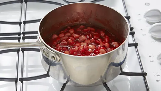 Step2In 2-quart saucepan, mix 3/4 cup of the sugar and the cornstarch. Stir in strawberries and 1/4 cup water. Cook over medium heat, stirring constantly, until mixture thickens and boils (mixture will become translucent during cooking). Boil and stir 2 minutes. Pour strawberry sauce into heatproof bowl; set aside.